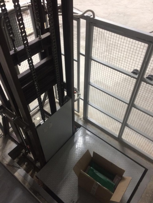 На складе готовой продукции в Казани введен в эксплуатацию грузовой цепной подъемник консольного типа ПГ-К-500.Подъемник оборудован внешним ограждением и системами безопасности.